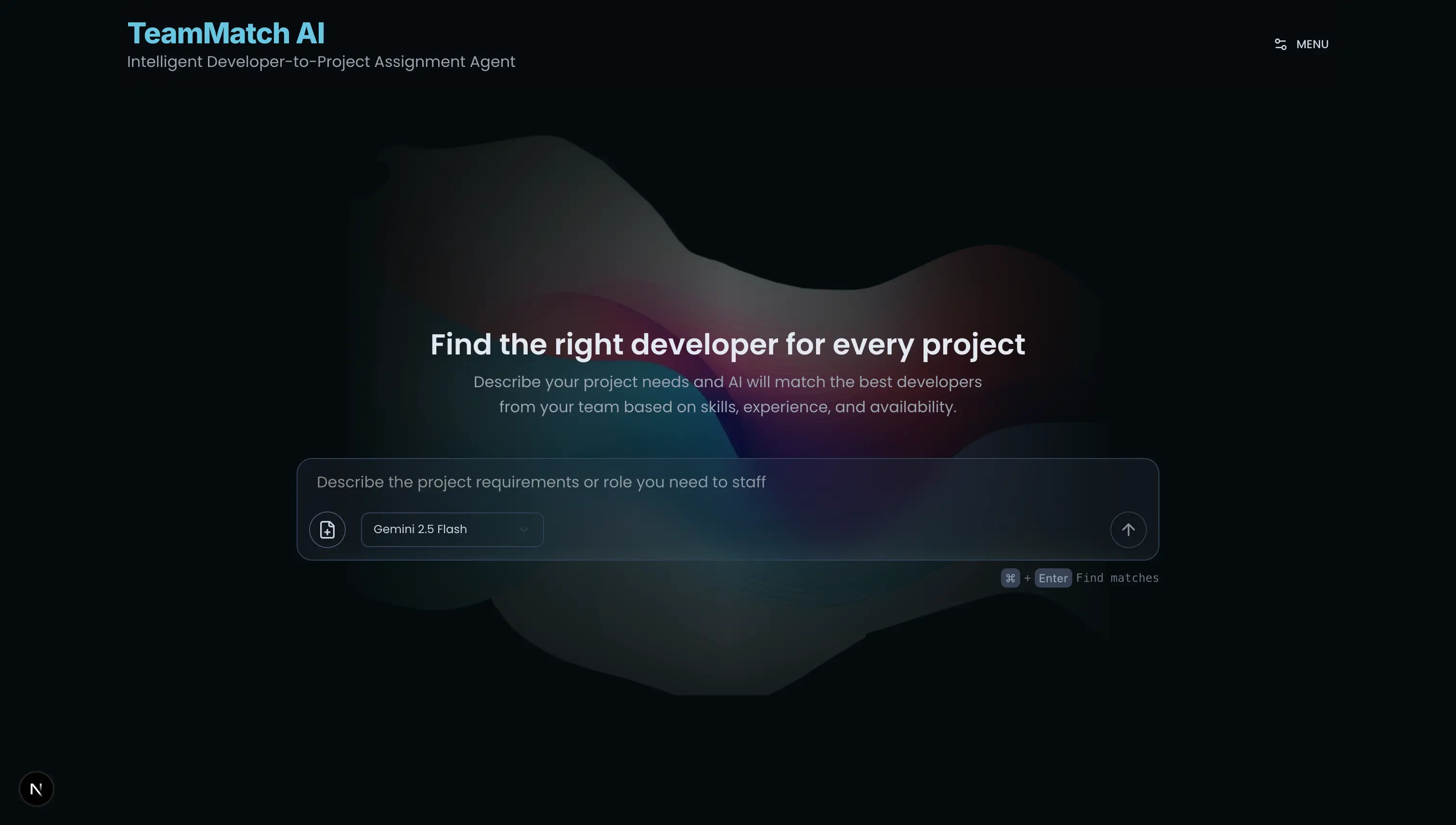 Intelligent developer-to-project assignment agent. Describe your project needs and AI matches the best developers from your team based on skills, experience, and availability. Built with the Vercel AI SDK, Gemini, and LangGraph, using a RAG pipeline with embeddings.